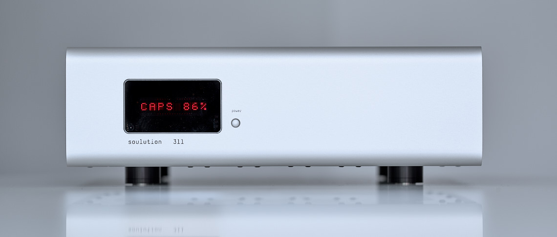 A total of six power supplies – optimized for each function – feed the 311 stereo amplifier. Four cutting-edge switched-mode power supplies deliver 1,200 VA of audiophile quality power. They feature high performance filtering at the input and output, and high speed soulution voltage regulators to deliver considerably more stable power than any conventional, transformer-based technology.