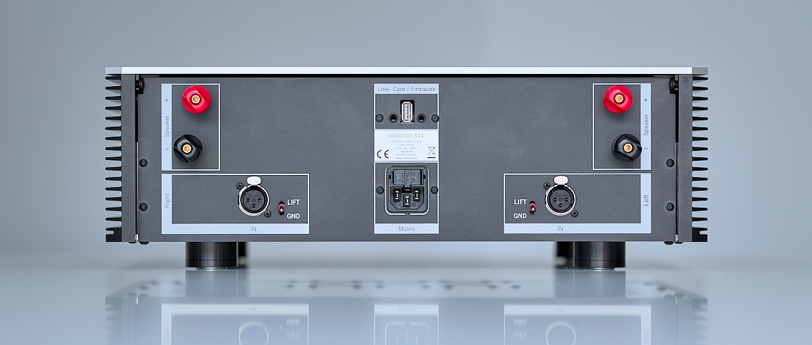 The amplification circuit of the 311 is based on the technology used in our Series 5 amplifiers. Current amplification is done in three stages, each with a narrow, almost linear operating range. The high Class A operation supplemented by more than 160,000 µF of storage capacitance results in a nearly infinite impulse response. High-precision idle current management ensures optimal Class A operation for all conditions, without requiring any readjustment in the music signal. Optimal sound is thereby guaranteed immediately from switch on. Control circuits that protect against RF or DC signals at the input, and short circuits at the output ensure safe operation in all situations.