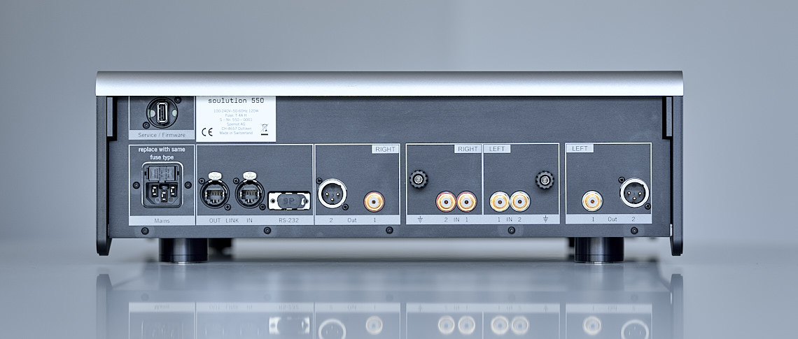 If nothing is to be lost at the source of music, then the power supply and the output stage of a phono preamplifier have to be of the highest quality. For the 550 Phono soulution uses identical power supplies and output stages to those employed in the 520 Preamplifier. Optimized for speed and precision the 550 Phono can drive any cable.