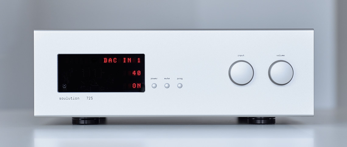 A perfect preamplifier shows consistent level and phase performance regardless of load. At soulution we stick to this ideal without resorting to often-used compromises like high amplification with high negative feedback. The result: virtually no distortion, hum or noise, maximum channel separation and impressive bandwidth (up to 1 MHz/– 3 dB).