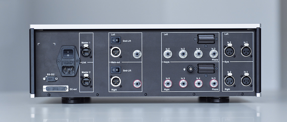 | Inputs | 2 × balanced (XLR) 3 × unbalanced (RCA) 1 × Phono-MC (optional) |